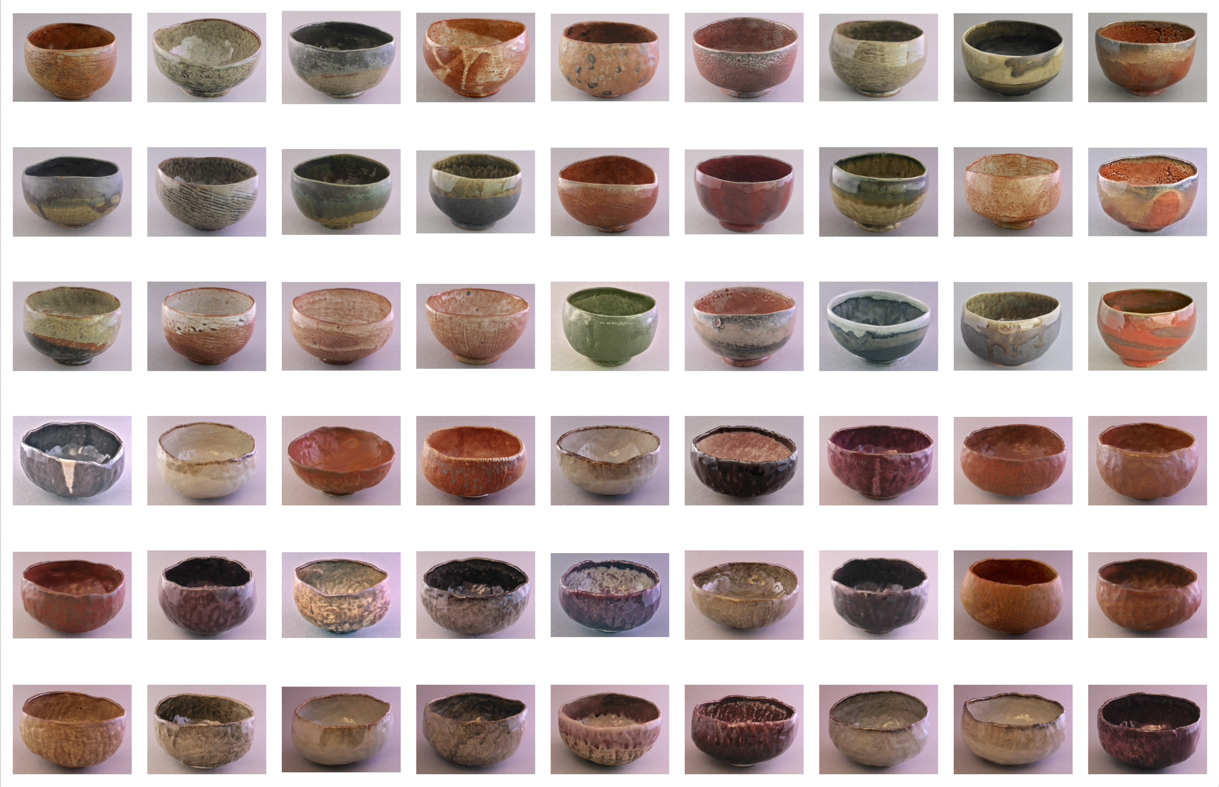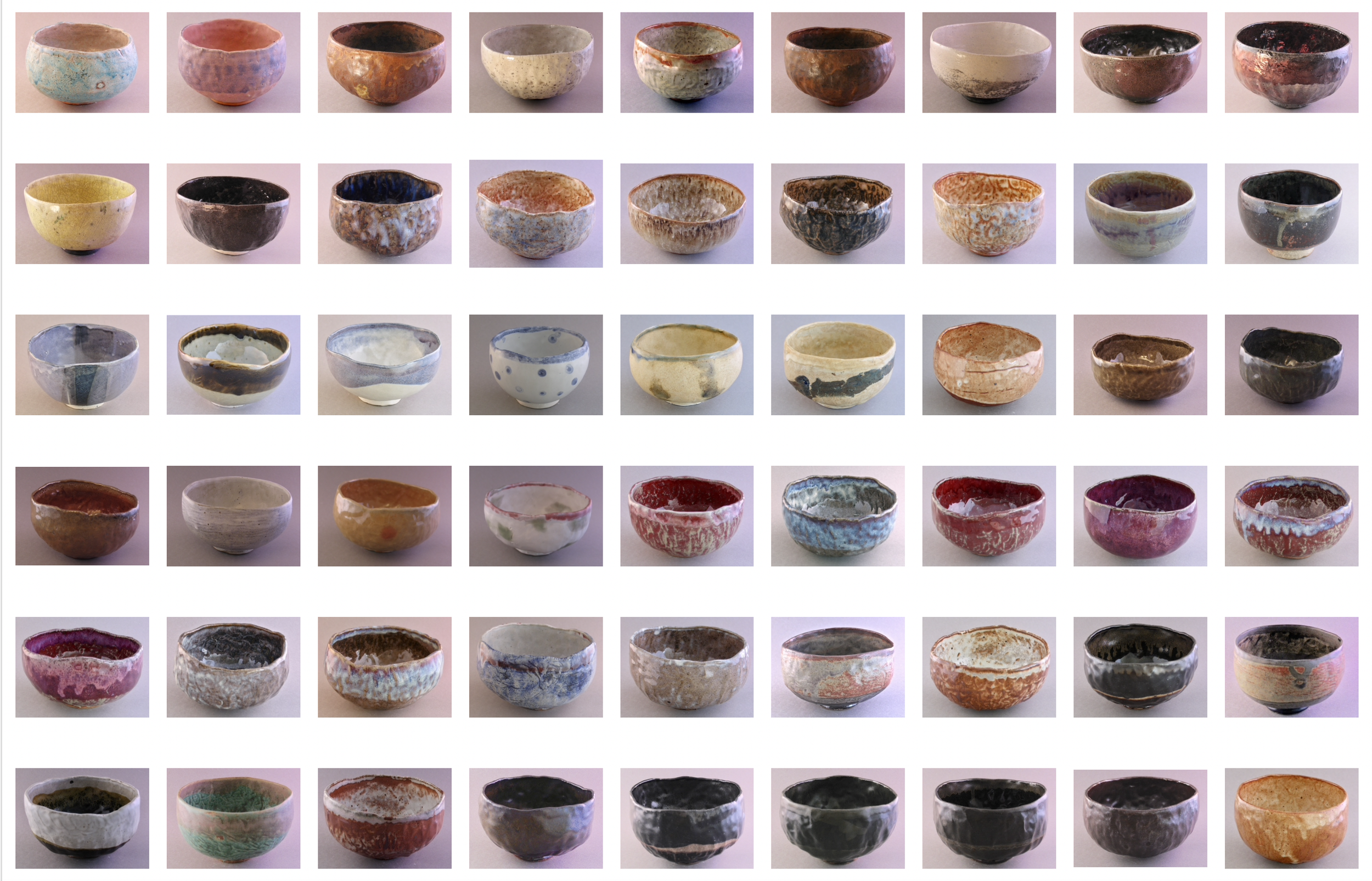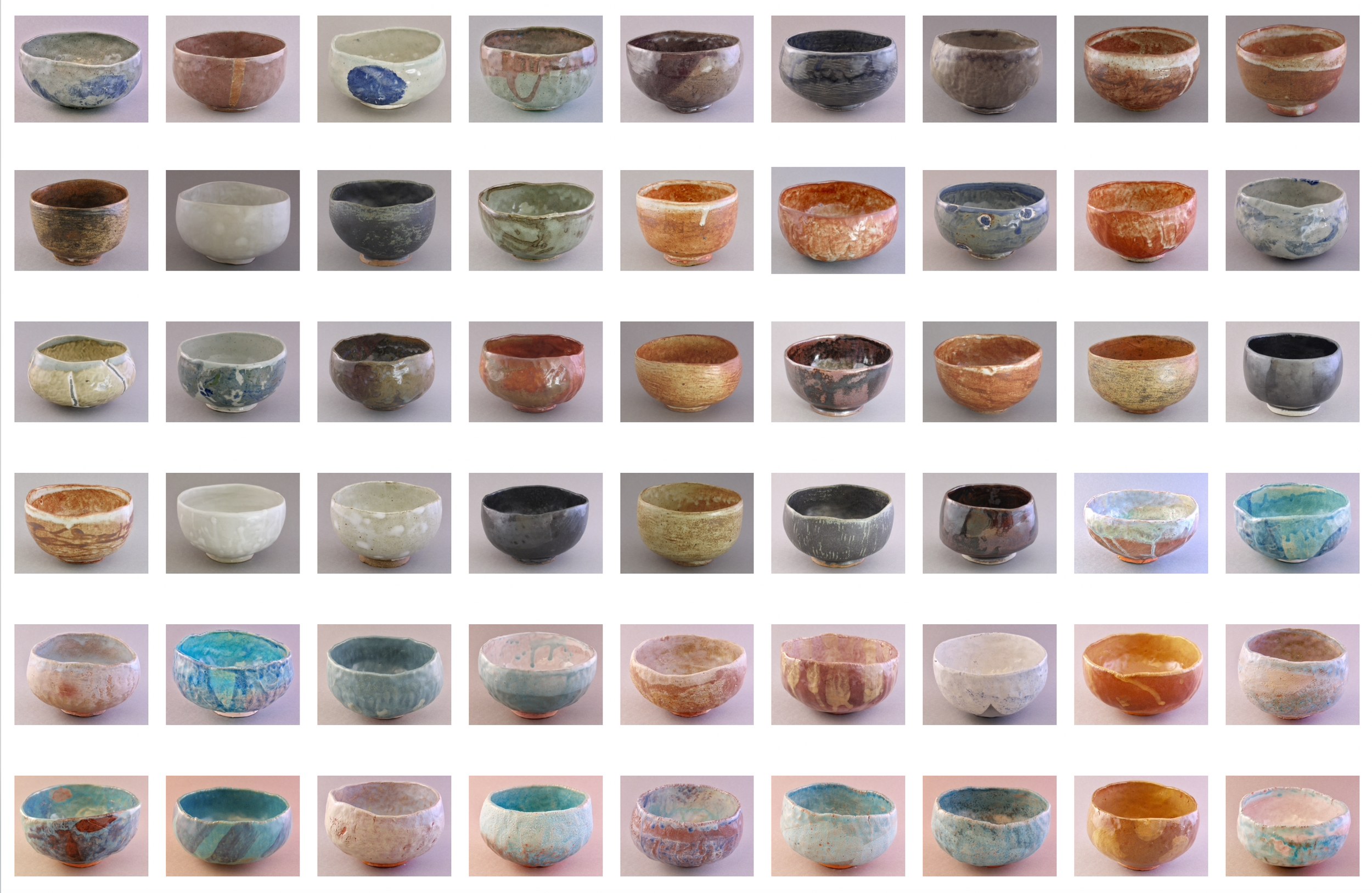 In late 2002, a shift to full-time office work distanced me from the studio. In response, I initiated a quiet, daily ritual: the making of one pinched tea bowl each day throughout 2003. Each bowl is stamped with the date on its foot. I glazed them in monthly batches. The repetition became a form of meditation - an exploration of touch, time, and quiet persistence. This daily practice deepened my connection to clay. It reminded me that small, sustained engagment can build a meaningful and lasting body of work.