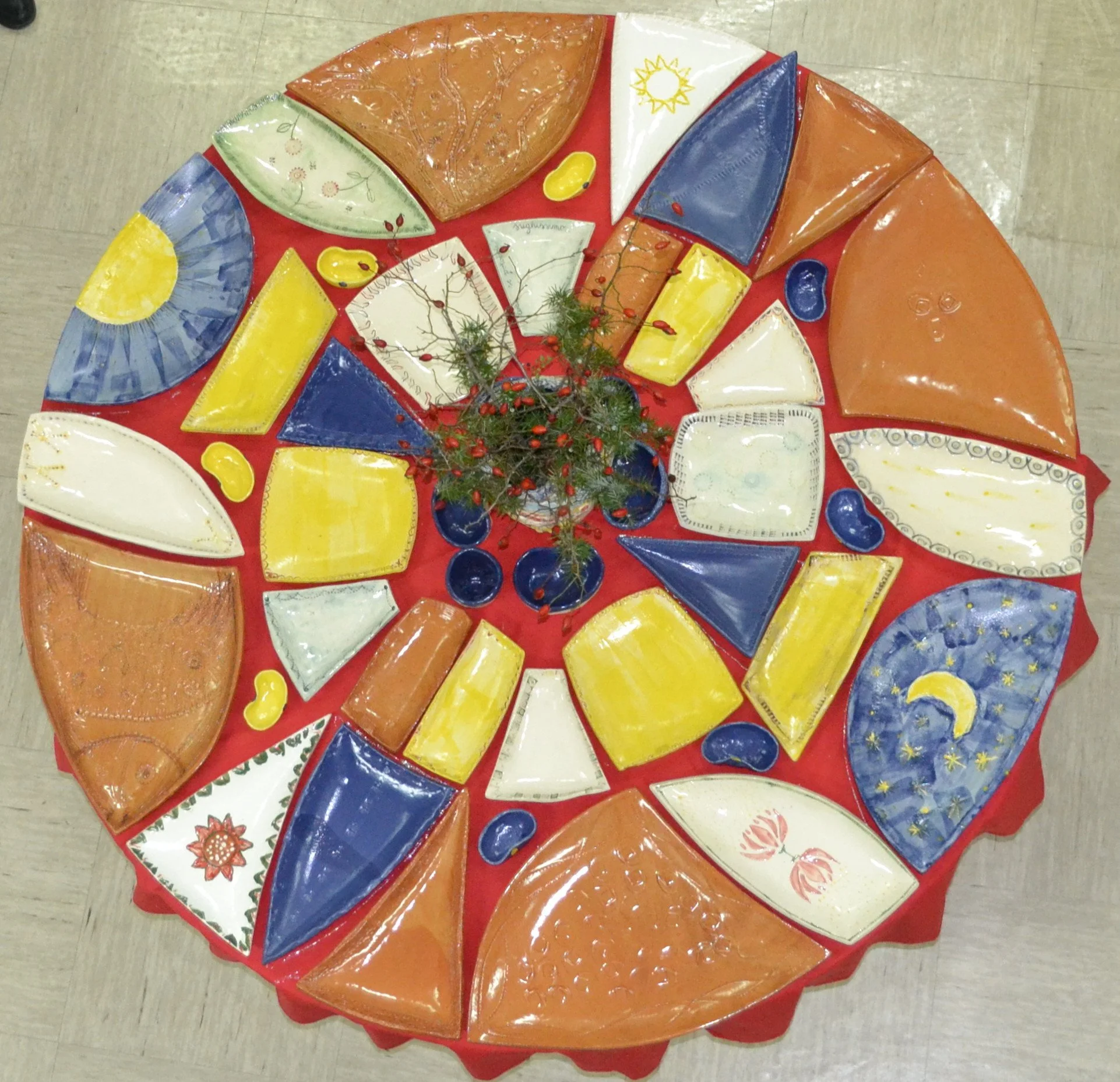 In collaboration with ten friends from my hometown of Labin in Croatia, we designed and created an unique table setting inspired by the symbolic form of a mandala. Most of prticipants were new to ceramics, learning and creating side by side in a series of workshops.